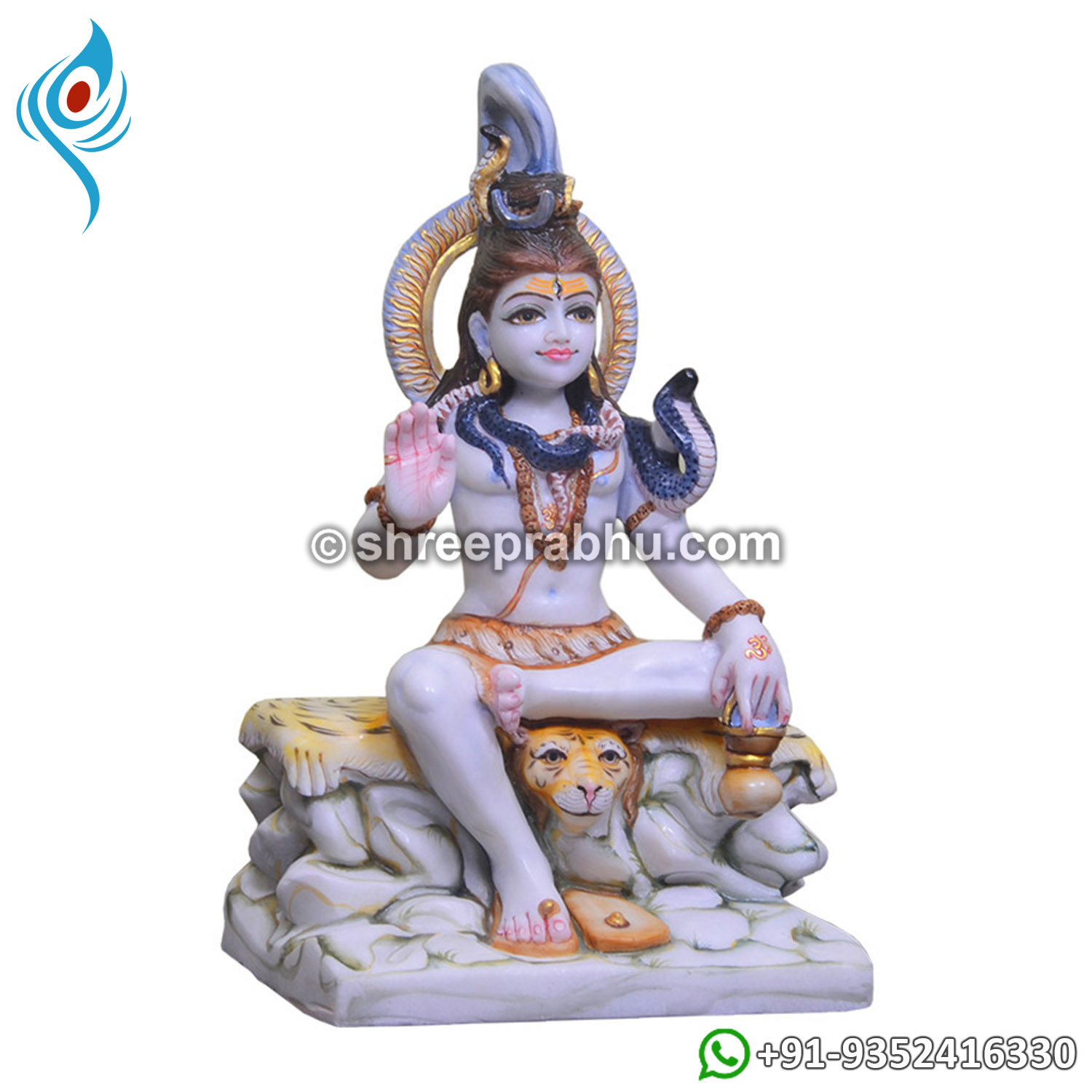Marble Lord Shiva Statue is a finely crafted idol of Lord Shiva, carved from premium-quality white marble. This statue captures the serene yet powerful presence of Mahadev, symbolizing peace, transformation, and spiritual strength. Detailed with sacred elements like the trishul, damru, third eye, and crescent moon, the idol reflects divine energy and calm. Its smooth marble finish enhances the purity and elegance of the sculpture, making it ideal for home temples, meditation spaces, or spiritual décor. It brings inner peace, protection, and blessings into any sacred space.