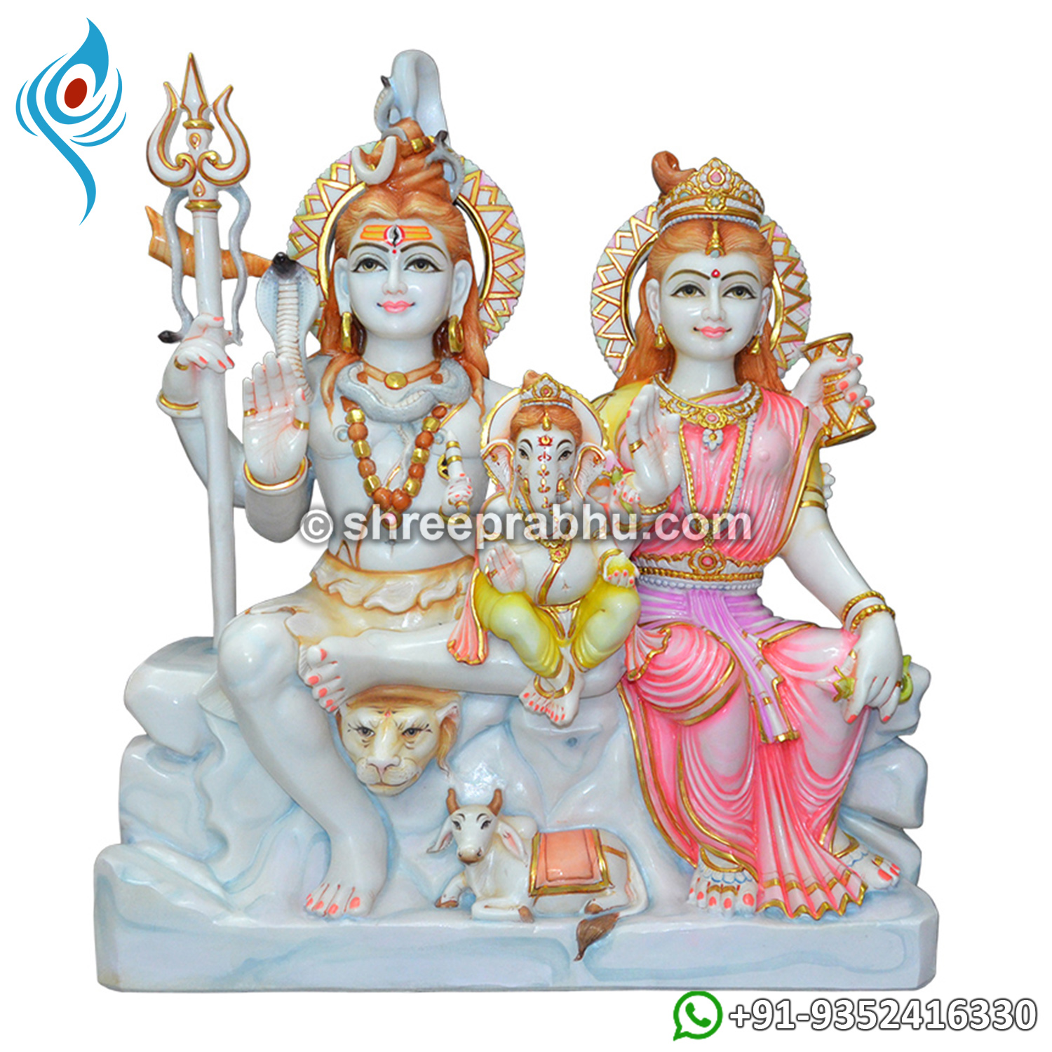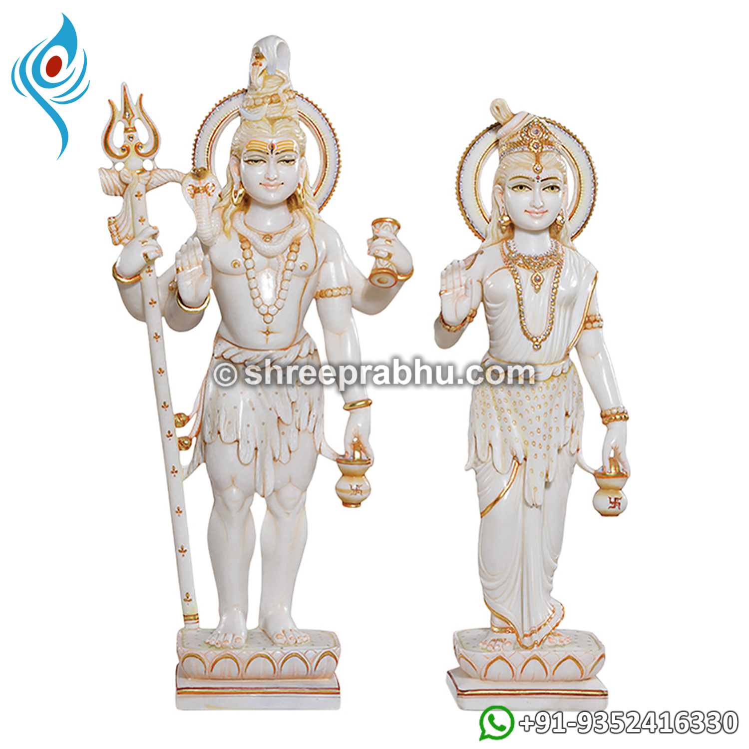 The Shiv Parvati Marble Murti beautifully captures the divine presence of Lord Shiva and Goddess Parvati, symbolizing their eternal bond and cosmic harmony. Handcrafted from premium-quality white marble, this murti radiates spiritual energy, peace, and divine grace. Lord Shiva is depicted with his iconic trishul, damru, jata (matted hair), and third eye, while Goddess Parvati is shown with calm elegance and motherly strength. The fine craftsmanship and smooth marble finish make this murti ideal for home temples, pooja rooms, or spiritual spaces.